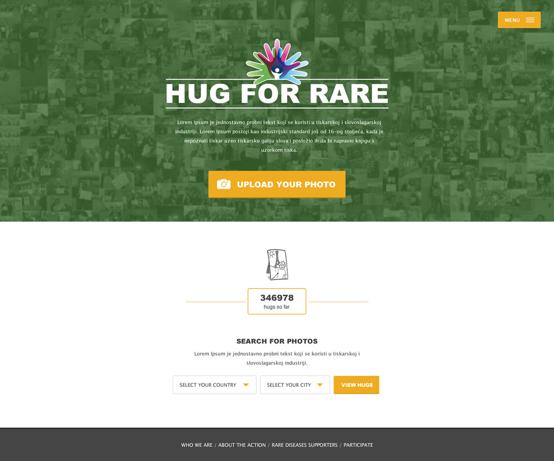 Web stranica za nacionalni projekt Hrvatskog Saveza za rijetke bolesti. Jednostavni vizualni dizajn gdje je najbitnije bilo predstaviti projekt u što preglednijem obliku te postaviti sve potrebne komponente u najjednostavnijem obliku, čime se naglašava veoma jednostavno korisničko sučelje za upotrebu.